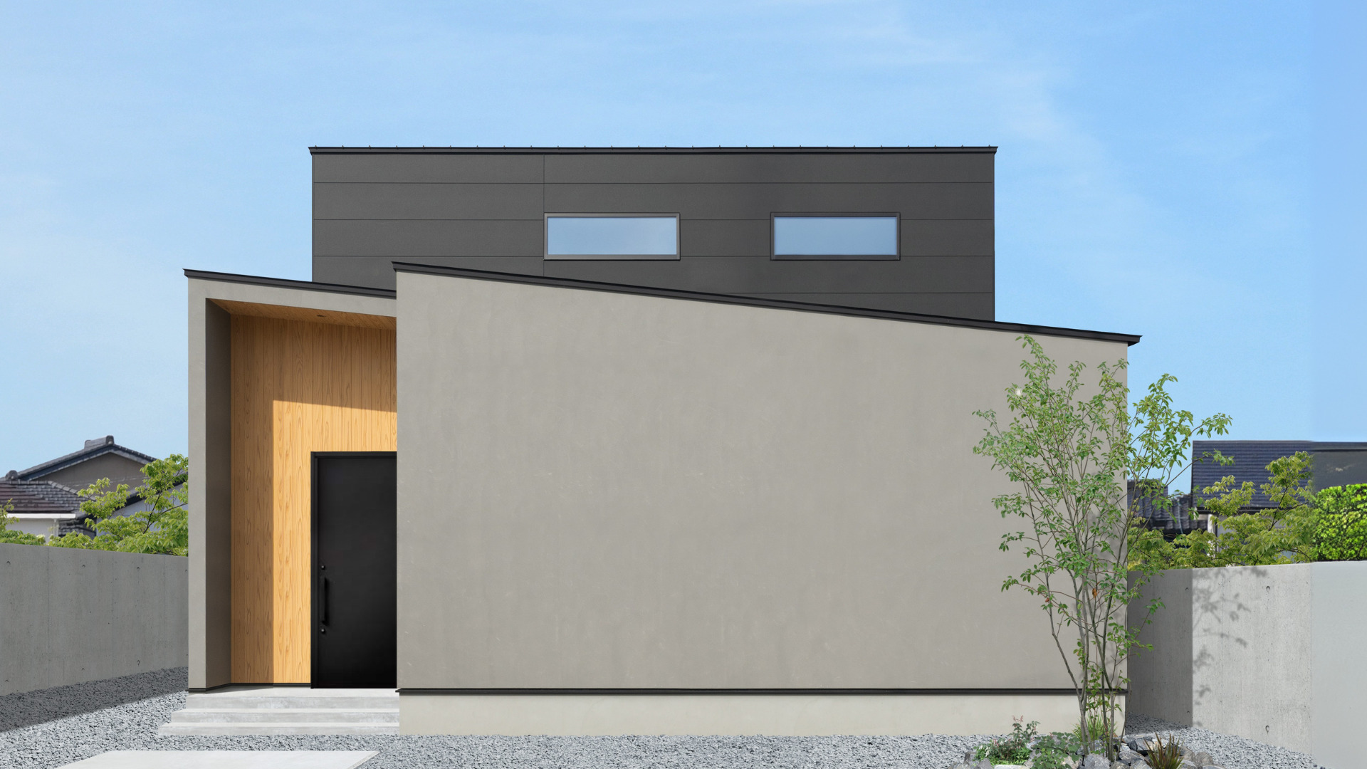 窓の位置や玄関とのバランスも考慮し、線を意識したファサードデザインを追求しています。