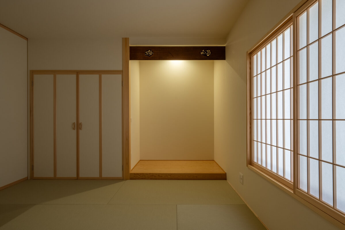 小上がりの部分には引き出しを造作し、限られた空間のなかに