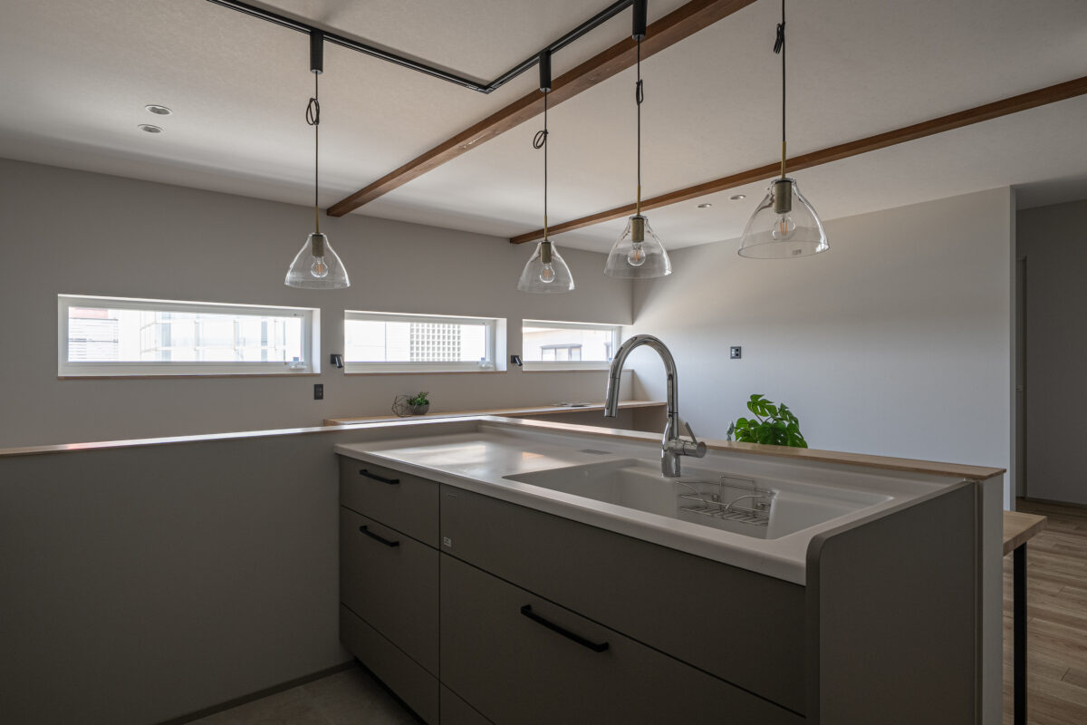 子世帯のキッチンはⅡ型キッチンをコの字型に造作し