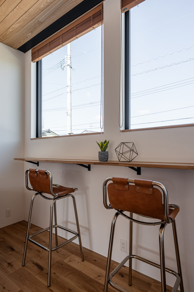 キッチンにもカウンター部分はありますが、リビングの北側大型サッシ側にもカウンターを設置し