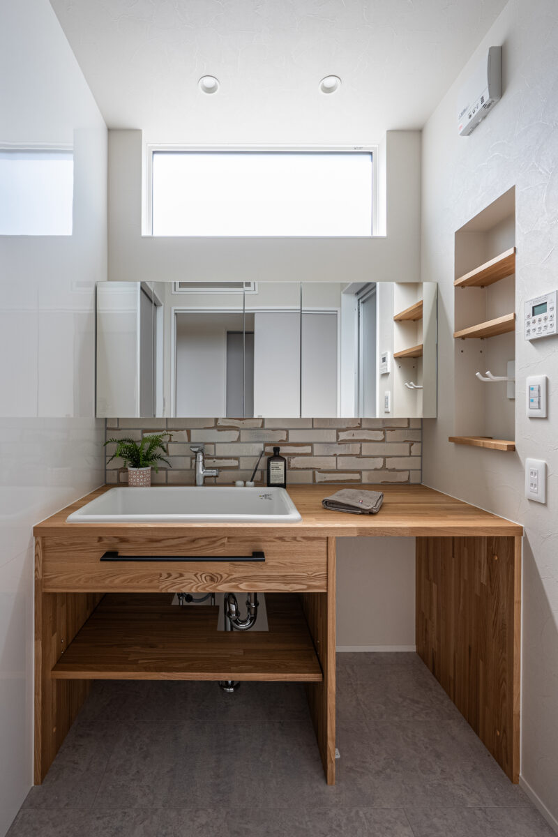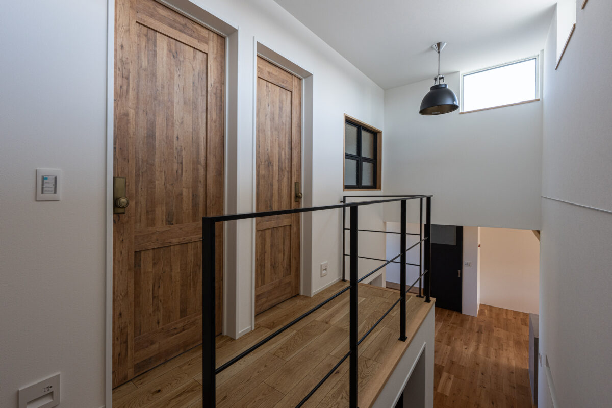 階段の途中にトイレを配置し、お客様用と2階用を兼用した配置にしました。
