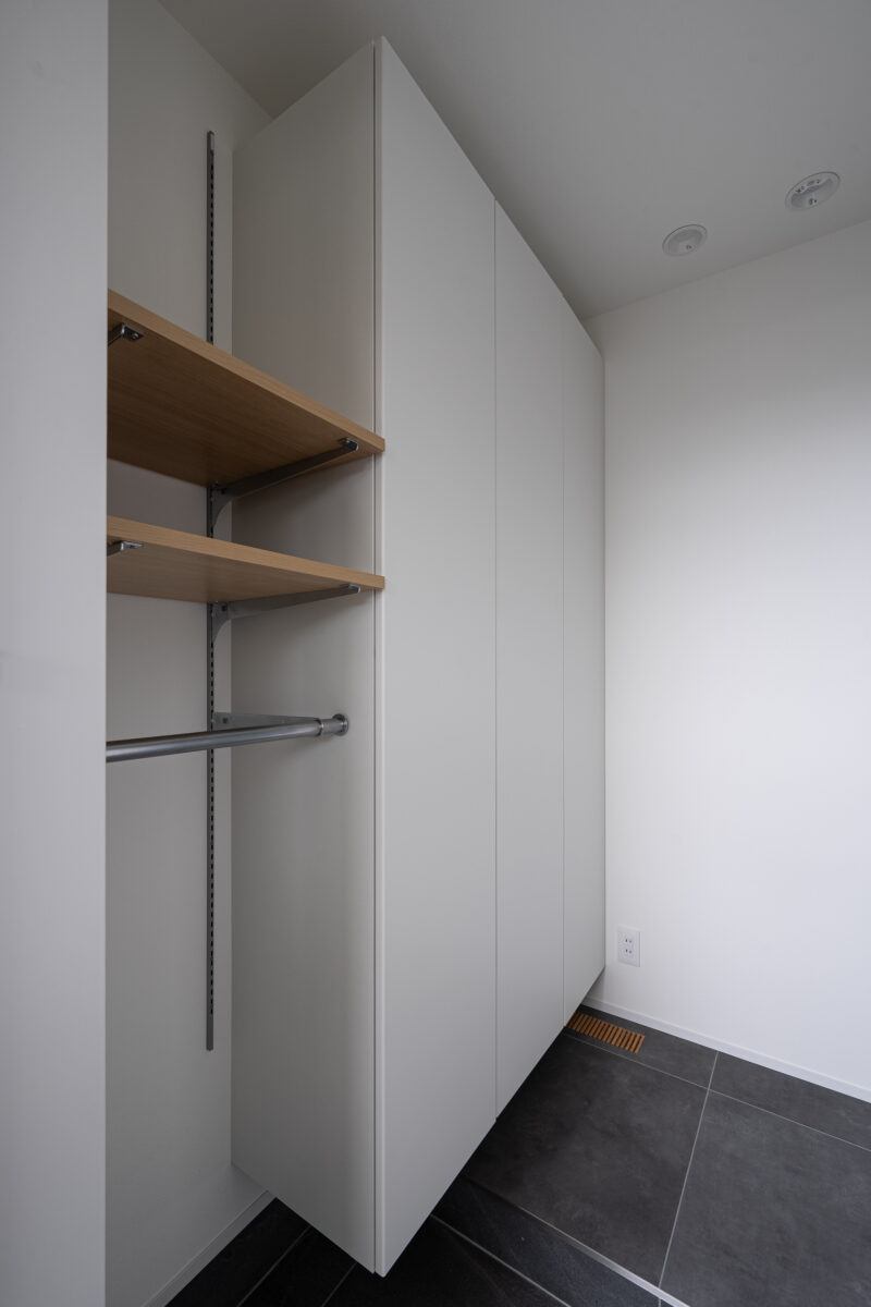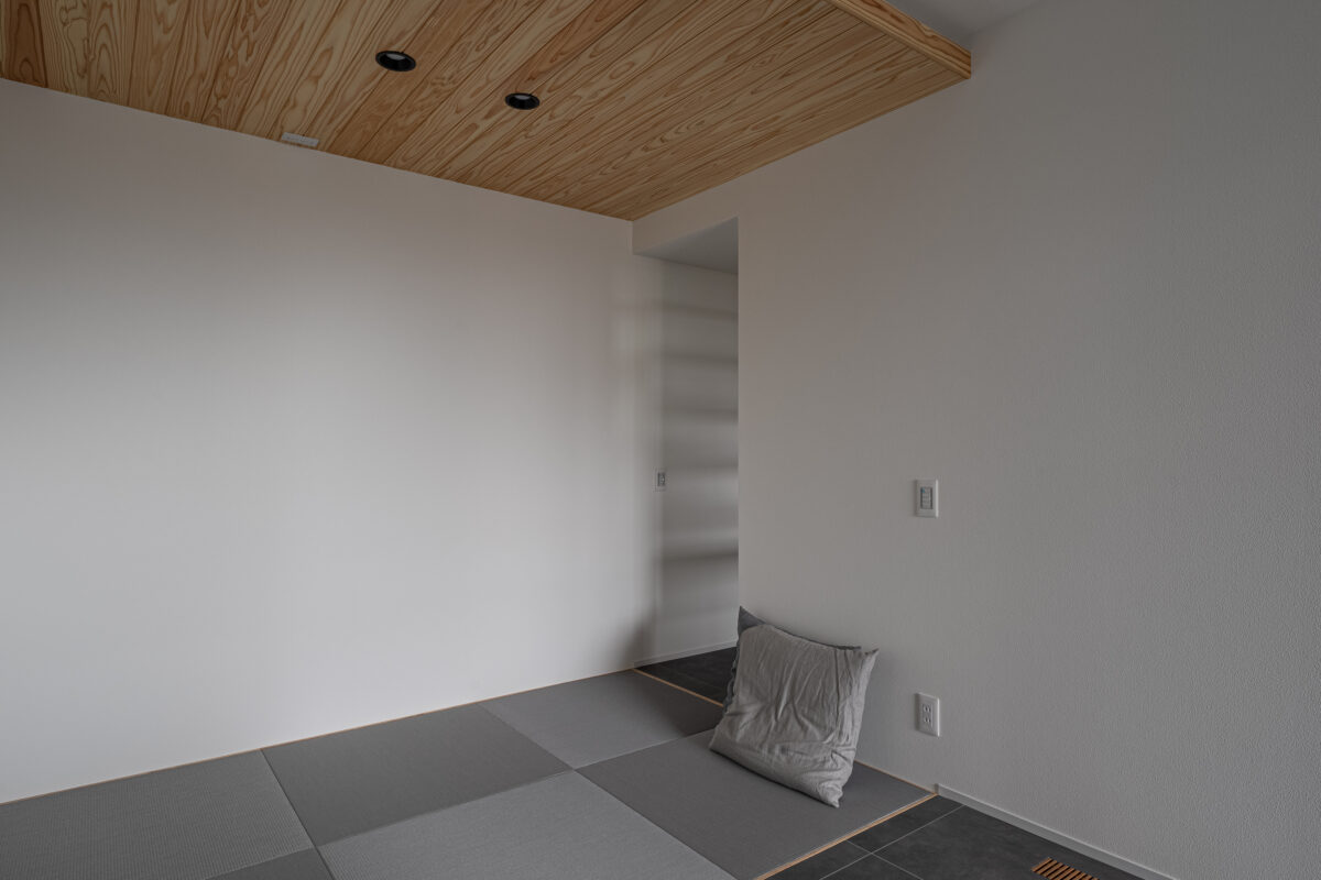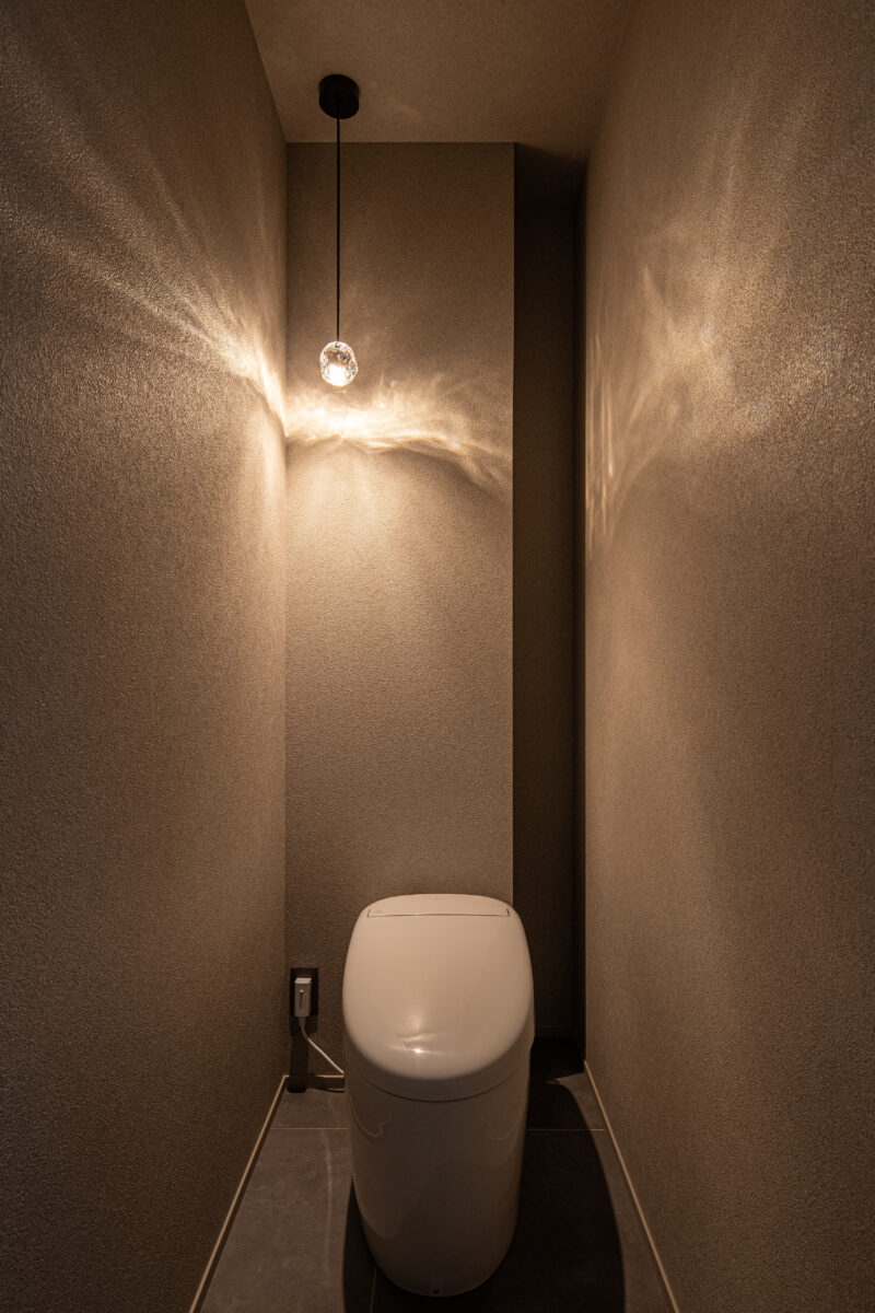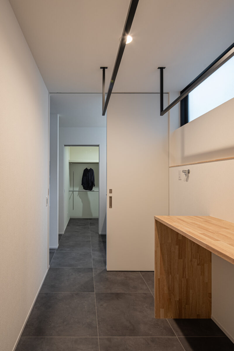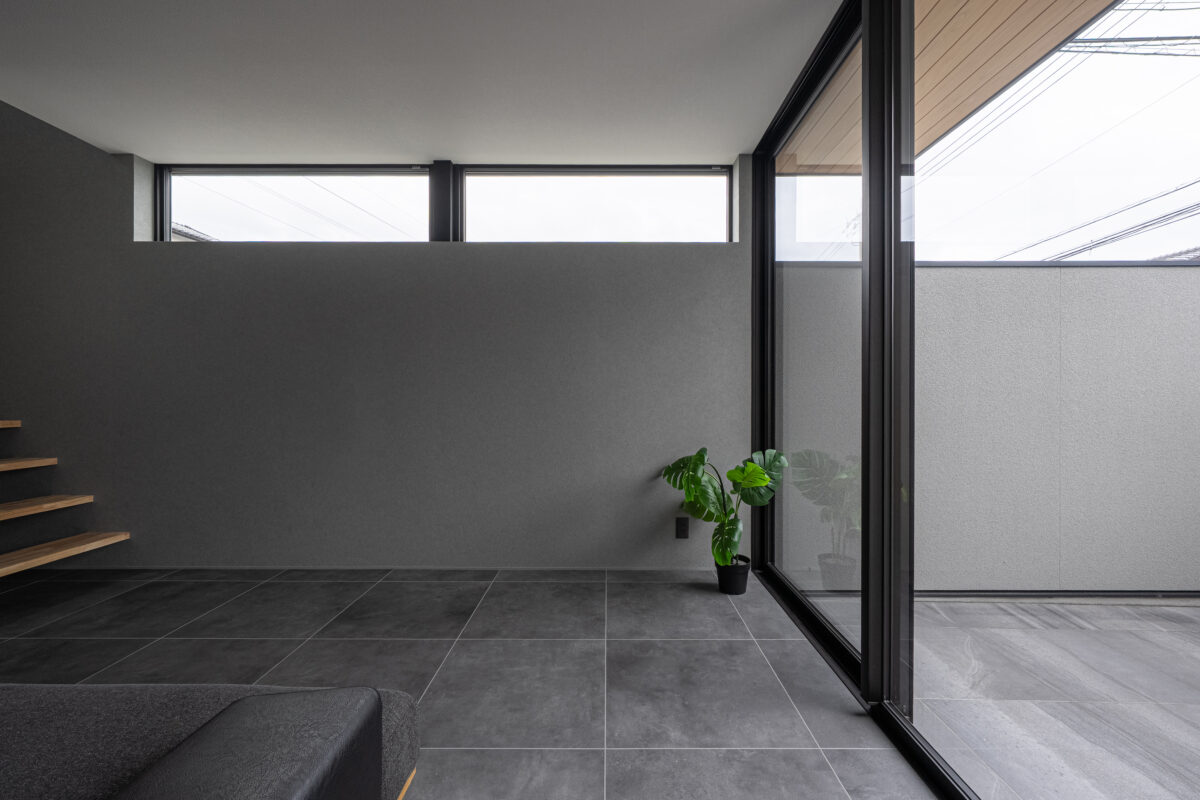 無垢材ではなく、グレー基調のタイルと壁材が都会的な洗練さを醸し出し、どこか静謐な美術館のような印象です。